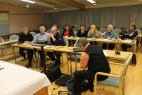 Kaarinan kiitokset. |  Kevätkokoukseen osallistui 16 jäsentä. |  Kokousyleisöä. |